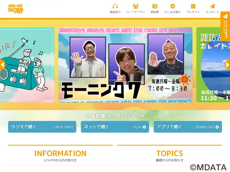 長野県諏訪市のケーブルテレビ局LCVが運営するコミュニティFM。2007年1月12日に開局。周波数は76.9MHzで、諏訪6市町村(茅野市、諏訪市、岡谷市、下諏訪町、富士見町、原村の一部)を放送エリアとしている。エルシーブイ本社1階にあるスタジオLテラスから、地元の旬な話題や防災・災害情報など地域に密着した情報を発信。自社制作番組以外はミュージックバード番組を再送信している。JOZZ4AO-FM。