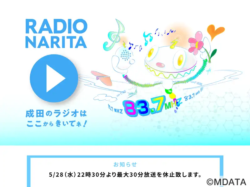 周波数83.7MHzで放送する、成田市のコミュニティラジオ局。ラジオナリタ、略して「ラジナリ」。国際ラジオ放送(株)が運営し、千葉県内5番目の地域FMとして2014年12月27日に開局した。国道51号線沿いのなるげや陶器ビル2Fにスタジオがあり、24時間放送。生放送と自局制作番組、ミュージックバード配信番組で構成。また、サイマルラジオやYouTubeライブ配信も行っている。JOZZ3BZ-FM。