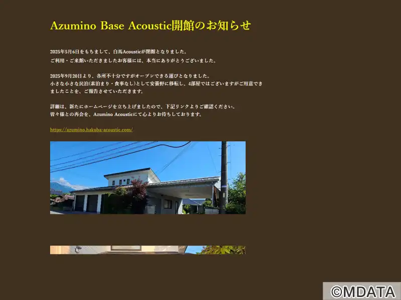 長野県北安曇郡白馬村の白馬山麓に位置するペンションタイプの宿泊施設。音楽とスキーを愛する人々にとってのユニークな空間で、白馬三山を一望する景観とともに音楽の喜びを堪能できる。2つのスタジオと、2つのライブステージを完備し、ハウスバンドの生演奏やゲストの弾き語り、学生団体による音楽合宿やライブパーティ、レコーディングなど、さまざまな音楽活動を楽しむことができる。また、白馬ギター倶楽部も開催している。