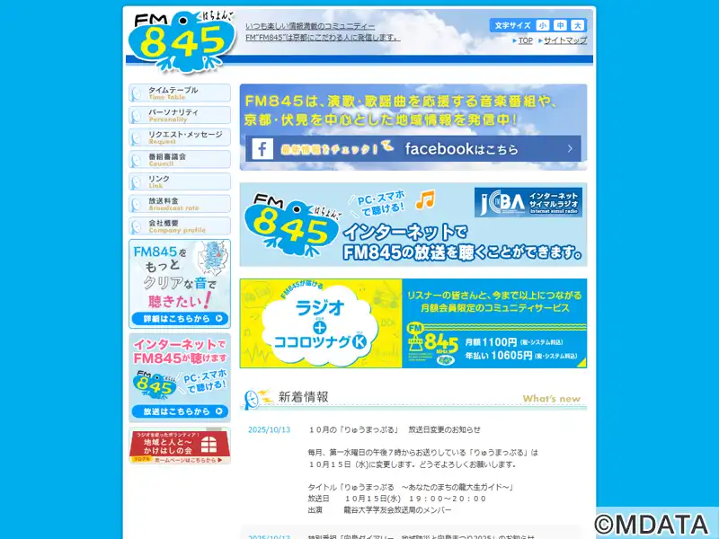 京都府京都市伏見区にあるコミュニティFM局。周波数84.5MHz、コールサインはJOZZ7AB-FMで、1995年に京都府初のコミュニティFM局として開局した。「京都にこだわる人に発信」をモットーに、地元の話題や生活情報、観光、健康、演歌・歌謡曲を応援する音楽番組など、幅広い内容を発信し、リスナー参加型のコミュニティサービスにも力を入れている。放送エリアは主に京都市伏見区・南区および八幡市の一部。