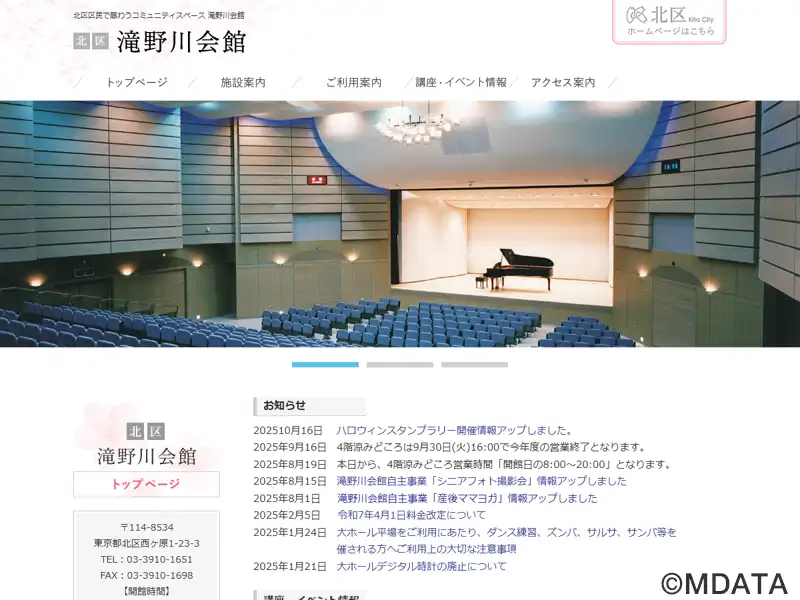 バンド練習ができるエレクトリック仕様のB201(ドラムセット、シンセサイザー、アップライトピアノ、ミキシングルーム有り)、合唱・アコースティック系に適したB202(アップライトピアノ有り)を完備。使用料は2時間2,310円。4Fに邦楽や日本舞踊の練習にぴったりの舞台付き(幅5.3m奥行2.3m)の406和室、2Fに壁面ミラー付きのリハーサル室を完備。駐車場40台あり。