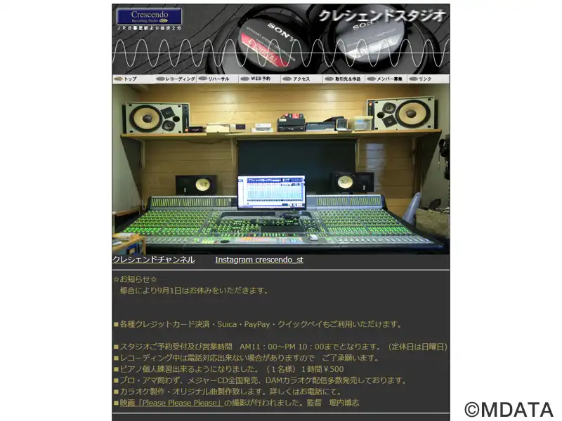 荒川区日暮里駅から徒歩2分の位置にあるレコーディング・リハーサルスタジオ。14帖と18帖の2つのスタジオとミキシングルームを併設し、プロからアマチュアまで、幅広い音楽活動をサポートする。ギター、ベース、ドラム、キーボード、エレピなど定番の定番機材を備え、ピアノ個人練習も可能。カラオケボーカルレコーディングやバンドレコーディングにも最適で、音楽制作からCDプレスや流通、カラオケ配信までサポートする。
