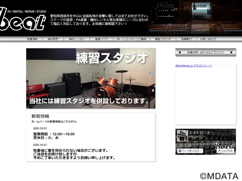 愛知県西尾市にある音響に関するプロショップで、音響機材のレンタル、ステージ設営、PAレコーディング、楽器リペアなど、様々なサウンドに関するサービスを提供する。併設されているバンド練習スタジオは、約11帖で、使用料(1時間)は、個人練習900円、2人で1,100円、3人以上は1,800円。ギターアンプ3台、ベースアンプ、Keyアンプ、ドラム、マイク×4が常設。機材の扱いに精通したスタッフが常駐する。