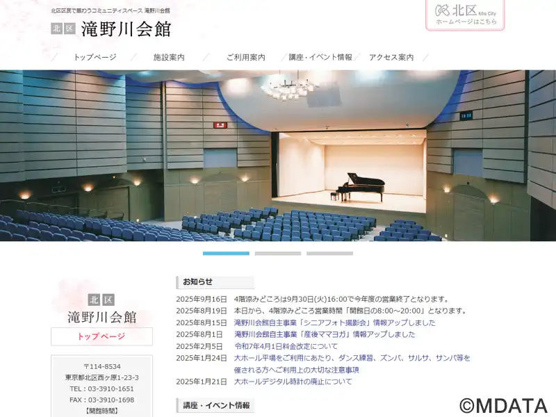 バンド練習ができるエレクトリック仕様のB201(ドラムセット、シンセサイザー、アップライトピアノ、ミキシングルーム有り)、合唱・アコースティック系に適したB202(アップライトピアノ有り)を完備。使用料は2時間2,310円。4Fに邦楽や日本舞踊の練習にぴったりの舞台付き(幅5.3m奥行2.3m)の406和室、2Fに壁面ミラー付きのリハーサル室を完備。駐車場40台あり。