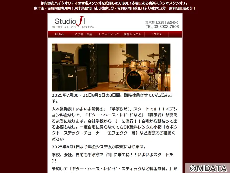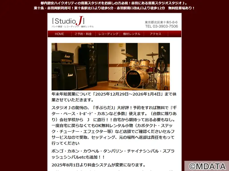 JR東十条駅北口から徒歩4分、無料駐車場完備の音楽スタジオ。トライアード音楽院の看板が目印(NEXTグループが運営)。10帖から20帖の全4スタジオ。プロ仕様の機材を揃え、各ルームともCDレコーディングが可能。バンド練習1h 999円~、個人練習600円(スタジオ指定1,000円/h)。お得な個人練習回数券あり。実績豊富なオペレーターによるレコーディング、楽器PAレンタルもお任せください。