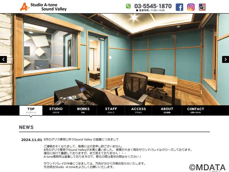 四谷・市ヶ谷のスタジオ「STUDIO SOUND VALLEY」。コントロールルームのスペースを広く、ロビー、ラウンジを設けるなど快適な居住空間を確保。Ast は162㎡のスペースにメインブースを含め5つのブースを設け、リズム録りからストリングス録りまで、現代のサウンド指向にマッチした多種多様なレコーディングに対応。Bstは居住性重視の約56㎡コントロールルームでMixDownなど長時間の作業でも快適。studio A-Tone東麻布・studio A-Tone四谷を展開。