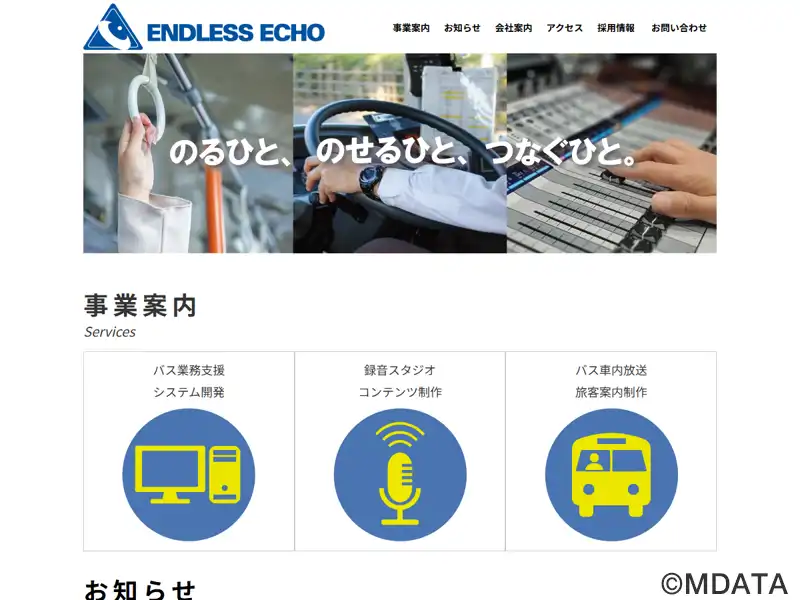東京都港区に位置する、公共交通機関向けの音声・映像コンテンツ制作やシステム開発を手がける専門企業。国内初のバス車内放送制作を出発点に、ナレーションや多言語音声、効果音・BGMの制作、交通案内向けデジタルサイネージなど、移動空間に特化した多様な音響・映像制作を展開している。都内の自社スタジオでは立ち会い収録やナレーターのコーディネートも可能で、DAWを活用した効率的な編集と文節合成の即時確認も特徴。