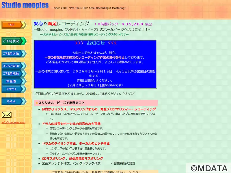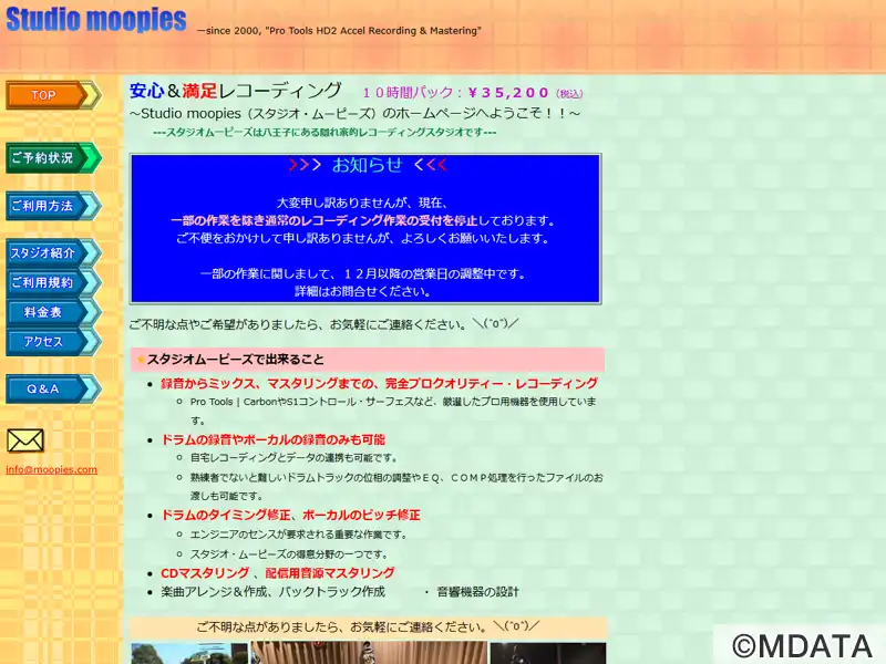 八王子市にある、2000年開業の隠れ家的レコーディングスタジオ。1日に1組限定で、静かな環境で集中してレコーディングができる。厳選したプロ用の機器で、録音からミックス、マスタリングまで、ハイクオリティーなレコーディングを低価格で提供する。また、ドラムの録音やボーカルのみの録音、自宅レコーディングとデータの連携も可能。楽曲アレンジ&作成、バックトラック作成、音響機器の設計などのサービスも提供する。