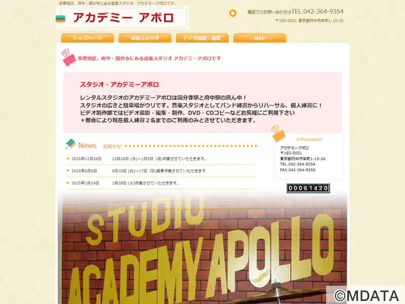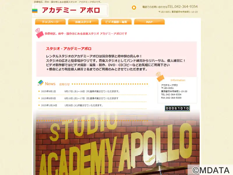 多摩地区にある音楽スタジオ&撮影スタジオ。音響設計と充実した機材で、音楽制作やビデオ制作のニーズに対応している。グランドピアノヤマハC7を常設する1Fスタジオ(25坪)、クロマキー撮影にも利用できるB1Fスタジオ(35坪)の2つのスペースを提供。バンド練習から個人のピアノ練習に利用でき。ビデオ制作部門も併設しており、ビデオ撮影から編集、DVDやBlu-ray制作までワンストップでサポートしている。