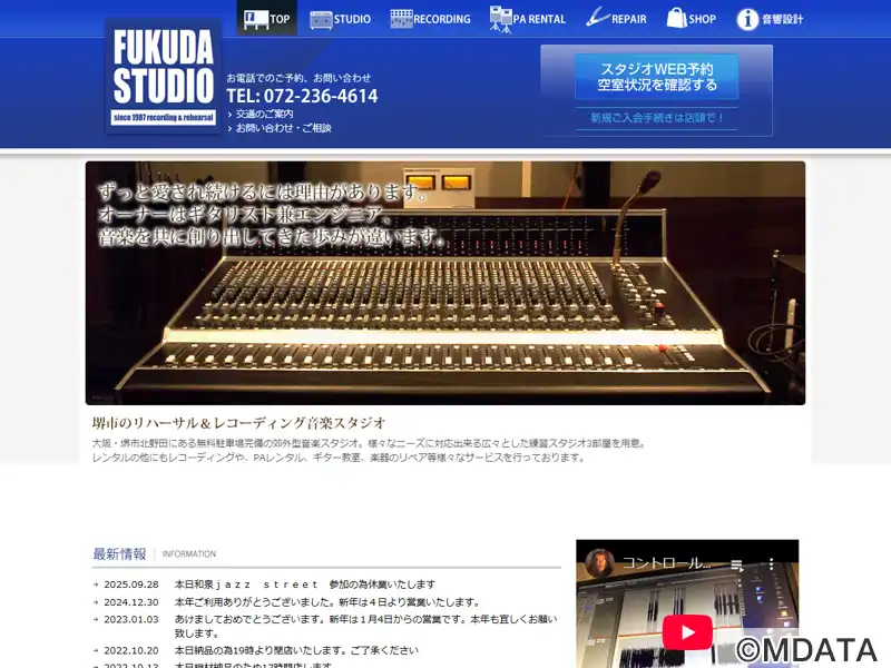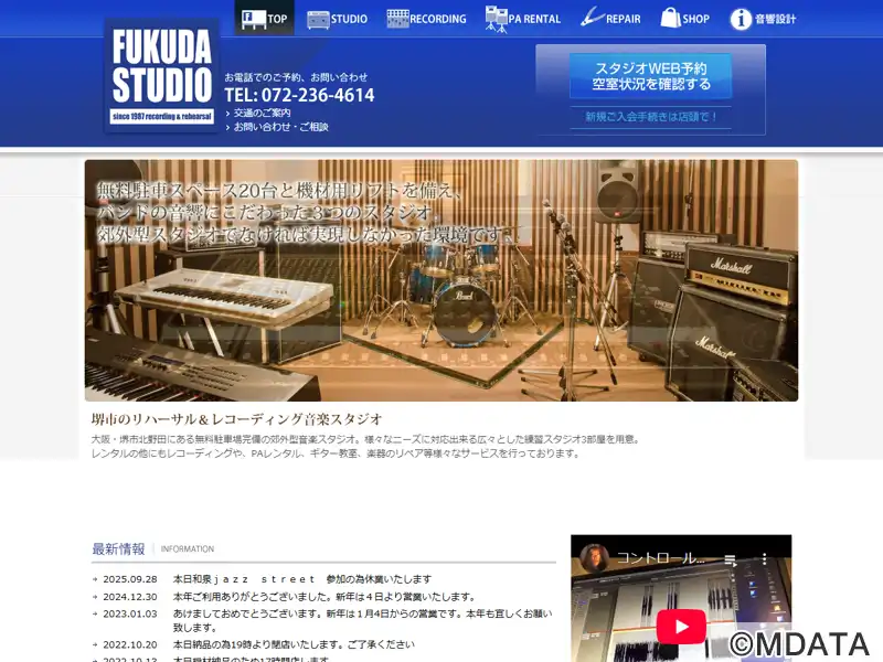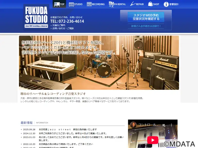 大阪・堺市北野田に1987年に設立されたリハーサル&レコーディングスタジオ。しっかり調整された機材と、バンド演奏に最適な音響特性の全3部屋を用意している。レコーディングには名器NEOTEK FLA2を採用し、最新機材とオールド・プリアンプによる高品位のレコーディングを実現している。また、PAレンタル、ギター教室、楽器のリペアなどの様々なサービスを提供する。無料駐車場が20台に、機材リフトも備える。