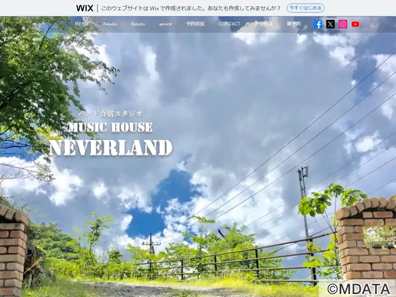 児玉郡神川町の静かな森に位置する、音楽人が作った音楽人のためのリゾートバンド合宿スタジオ。2部屋のスタジオを用意し、ビギナーの強化合宿からプロの曲作りまで、幅広く対応。24時間音出しできる。学割、団体割、ガチバン割などの割引サービス、BBQと鍋料理のセットも用意している。関越・練馬インターより90分、幻のバス停「ロックスタジオ」を降りてバンドマンの楽園「Neverland」へ。バスのチャーターも手配。