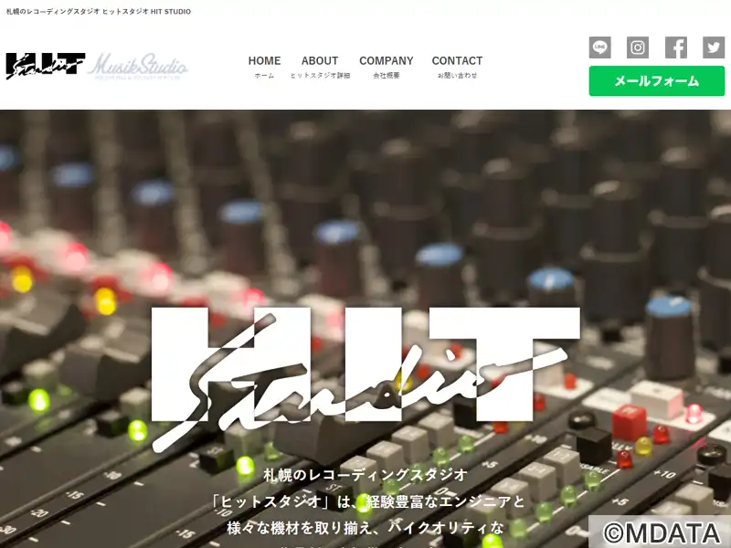 札幌市北にあるレコーディング、ミックス&マスタリングスタジオ。Pro Tools HDXを中心にアナログコンソールやアナログアウトボードを豊富に備え、バンド一発録りからヴォーカル、ドラム録音、ナレーション録音まで多様なニーズに対応可能。経験豊富なエンジニアが在籍し、小規模ライブから野外フェス、吹奏楽の出張録音に対応する。2020年から株式会社ヒットスタジオとして営業開始。系列にムジークスタジオを運営。