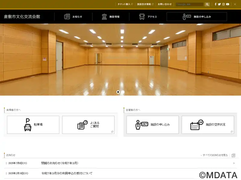 岡山県倉敷市における文化的な活動や練習の場として1998年に開館した文化施設。大小4部屋の練習室を備え、演劇や音楽、講習などに利用できる。大練習室は、約70名収容可能で、オーケストラのリハーサルにも対応。中練習室にはレッスンバー付きの鏡前でのダンス練習、小練習室は少人数向けで、音漏れの心配が少ない設計で、楽器練習やアンサンブルに対応。バリアフリー設備、授乳室、おむつ交換スペース、AEDも完備している。