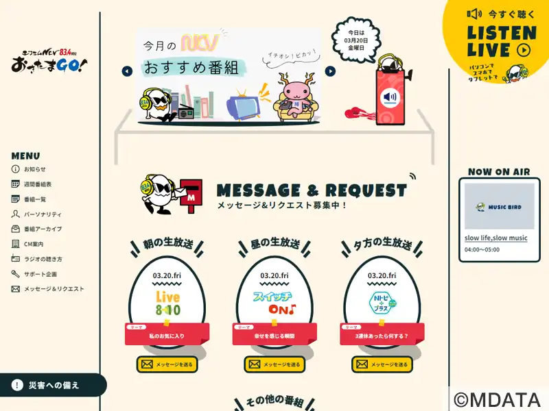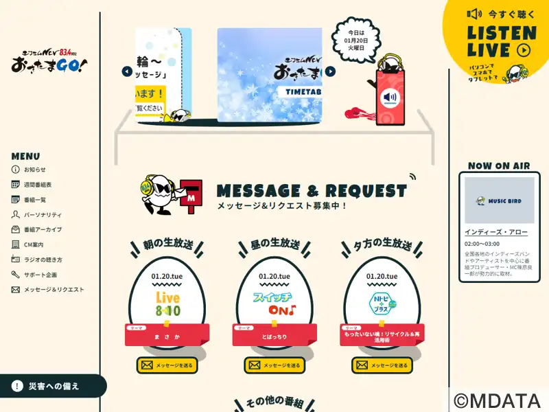 東南置賜地方の2市2町(米沢市・南陽市・川西町・高畠町)を放送エリアとするコミュニティFM。第三セクターのケーブルテレビ局・ニューメディア(NCV)の運営で、2012年12月24日開局。山形県内では4局目、置賜地方で初の開局。NCV米沢センター内にスタジオを設け、周波数83.4MHz(やさしいラジオ)から自主放送とミュージックバードを再送信。13年4月サイマルラジオを開始。JOZZ2BE-FM。