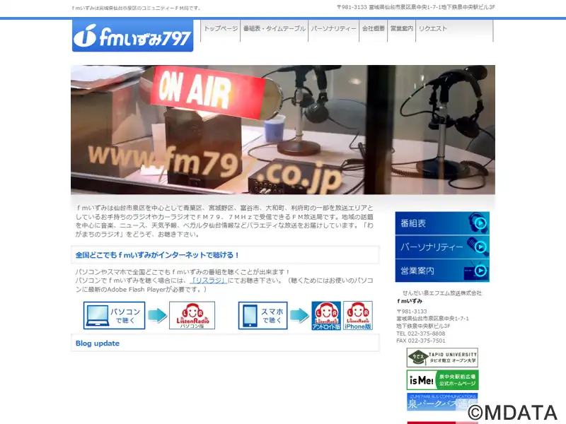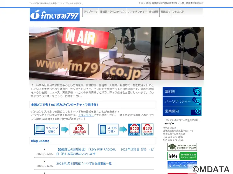 仙台市泉区を中心としたコミュニティ放送局。周波数79.7MHzで、せんだい泉エフエム放送株式会社の運営により2000年3月10日に開局。地下鉄泉中央駅ビル3Fのスタジオから地域密着の情報を発信。2007年から泉区出身のお笑いコンビ、サンドウィッチマン初の冠番組「サンドウィッチマンのラジオやらせろ!」も放送中。放送エリアは泉区、青葉区、宮城野区、富谷市、大和町、利府町の一部。JOZZ2AP-FM。