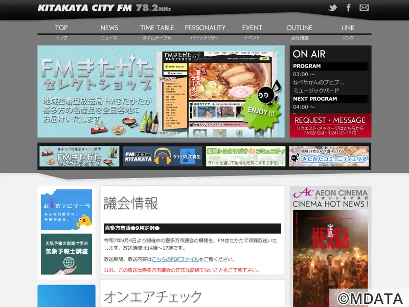2003年8月に開局した喜多方市のコミュニティFM放送局、愛称FMきたかた。周波数78.2MHzで24時間放送。平日6時間・土日4時間の生放送を行い、自社制作番組以外ではミュージックバードを再送信している。幅広い年齢層に支持される番組構成と、市民自らの視点で取材・企画・制作する市民参加型のラジオ局。放送エリアは喜多方市および隣接町村。JOZZ2AU-FM。