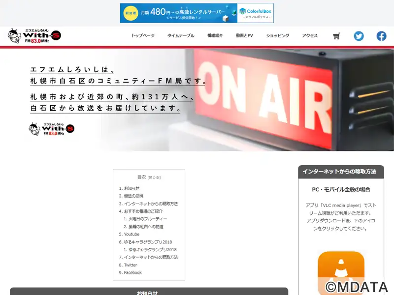 札幌市白石区のコミュニティFM放送局。周波数83.0MHzで、2007年12月23日に開局した。2020年からエフエムしろいし株式会社が運営している。南郷通8丁目にスタジオを設置しており、平日の生放送を中心に、バラエティ豊かなパーソナリティによるオリジナル番組・音楽番組を放送している。可聴エリアは札幌市白石区、厚別区、豊平区、東区、北区、中央区、南区の一部など。コールサインJOZZ1AX-FM。