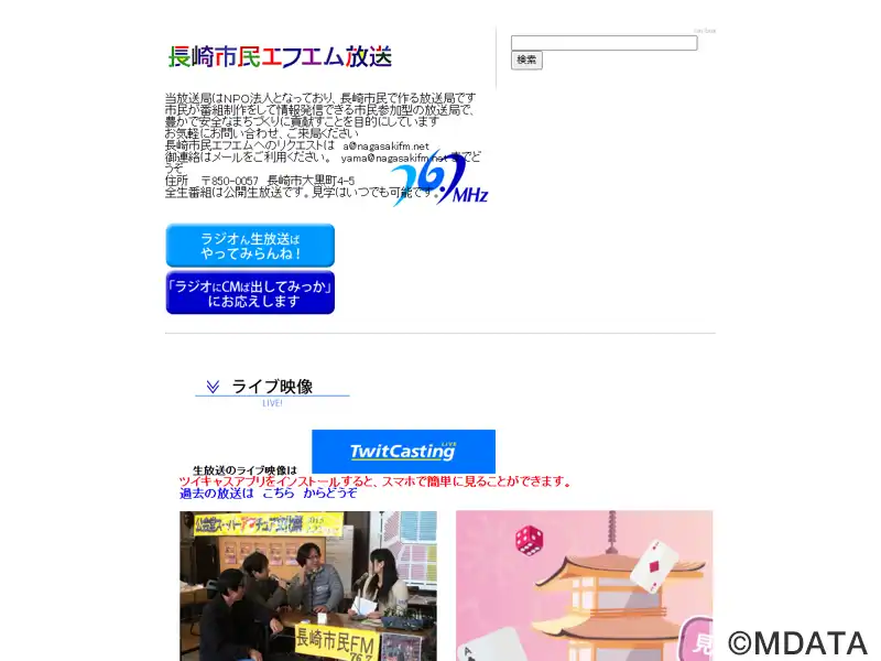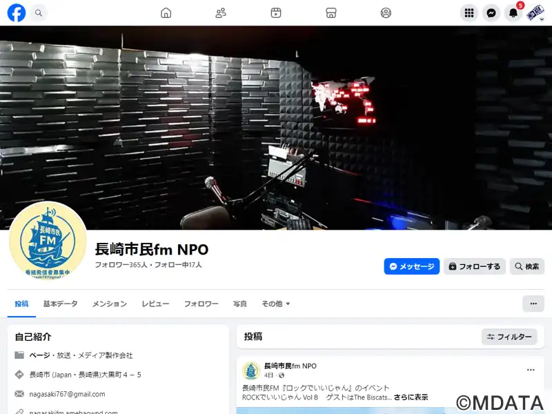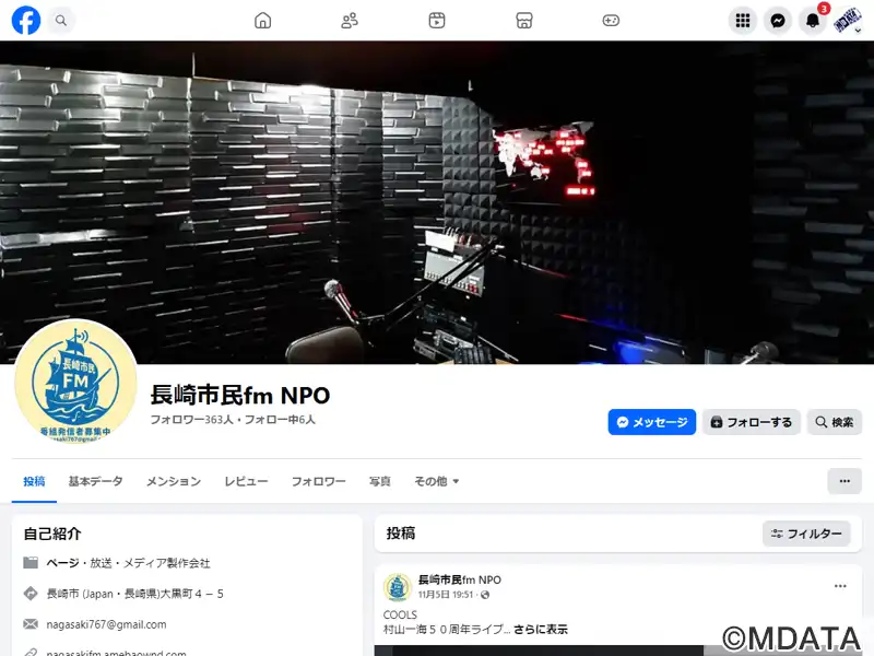 周波数76.7MHzで放送中の長崎市民で作るコミュニティ放送局。NPO法人長崎市民エフエム放送の運営で2005年9月9日開局。市民が放送局の会員となって運営する非営利市民参加型メディアで、誰でも番組制作して情報発信が可能。長崎駅前の大黒町にスタジオがあり、生番組は公開生放送。ツイキャス配信あり。放送エリアは長崎市の中心部と長与町、時津町の一部JOZZ0AV-FM。