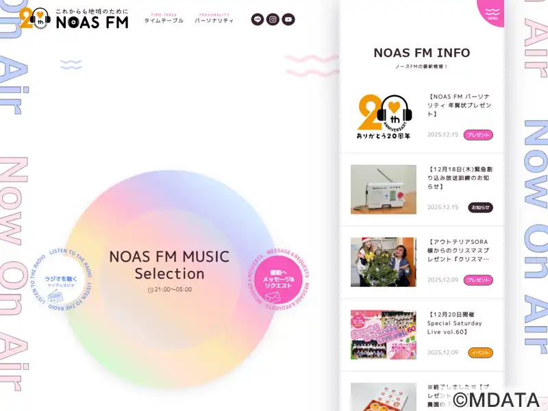 2005年9月に開局した大分県初のコミュニティ放送局。NOAS FM(ノースエフエム)は大分県北(中津市・宇佐市・豊後高田市)と福岡京築地域(豊前市・上毛町・吉富町)を放送エリアとし、大分合同新聞中津支社2Fにあるスタジオから周波数78.9MHzで24時間放送。番組はすべて自社制作で、イベント企画やフリーマガジンの発刊など独自性のあるコンテンツを発信。JOZZ0AX-FM。