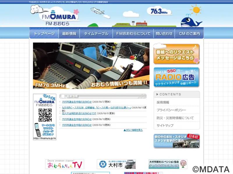 長崎県大村市にあるコミュニティFM局。周波数76.3MHz、コールサインはJOZZ0BM-FM。2010年に開局し、JR大村駅舎内にスタジオを設置している。放送はすべて自社制作・生放送で構成され、大村市民による市民のための放送を基本理念とし、生活情報や市議会中継、観光・防災情報、地域イベント、学校や企業との連携番組など、幅広い内容を発信している。放送エリアは大村市を中心とした大村湾周辺をカバー。