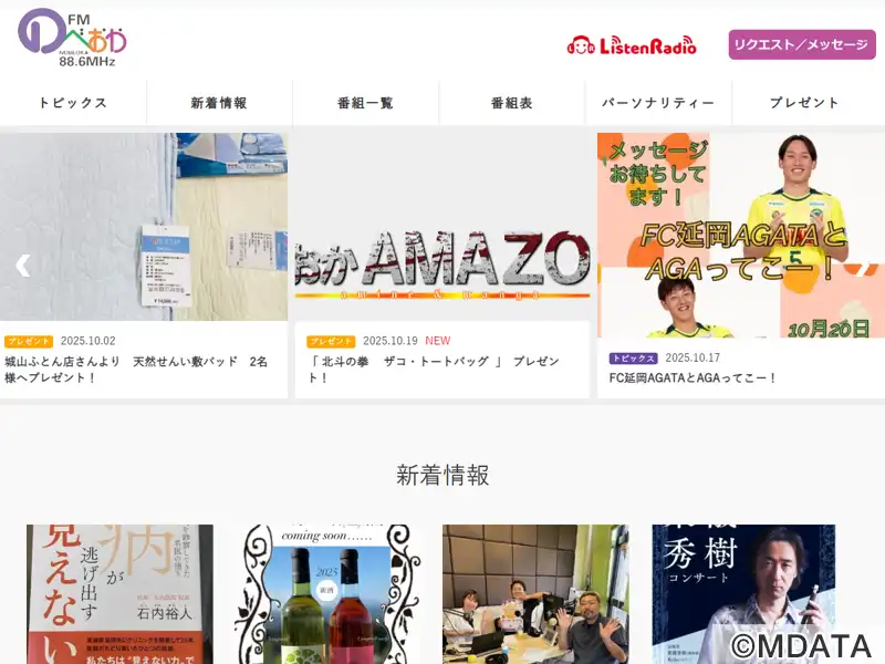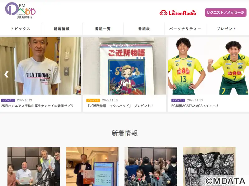 宮崎県延岡市を放送エリアとするコミュニティFM局。周波数88.6MHz。夕刊デイリー新聞社が中心となり、2012年2月20日に開局。同社本社内にスタジオ、愛宕山公園に送信所が設置され、旧延岡市街地をカバー。コンセプトは、「リスナーとともにつくるラジオ」「元気!が出るラジオ」で、毎日7時から21時まで14時間生放送。緊急時には、防災メディアとして市内各地域の情報を即時発信。JOZZ0BZ-FM。