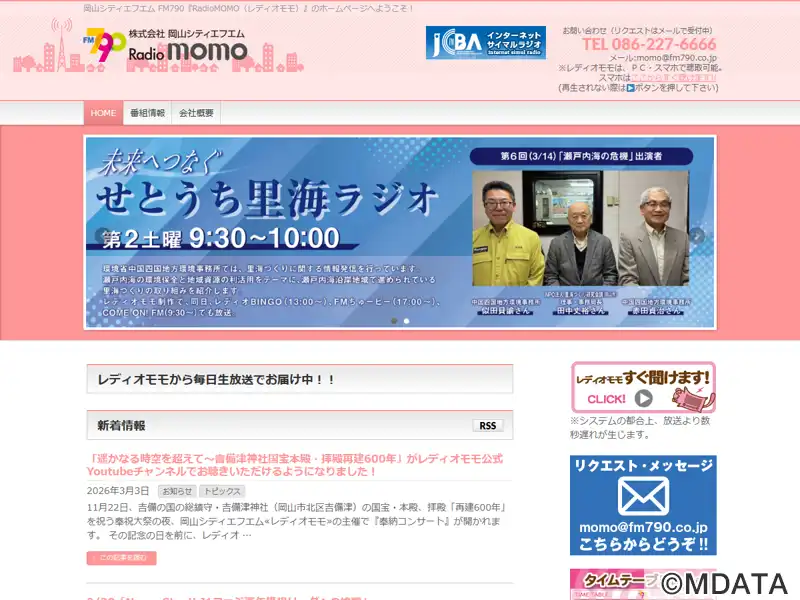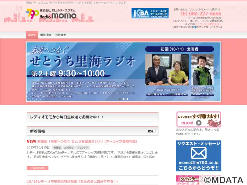 岡山県岡山市北区を拠点とするコミュニティFM局。周波数79.0MHz、コールサインはJOZZ8AD-FM。1997年に開局。愛称「レディオモモ」は、岡山の名産である桃や、作家ミヒャエル・エンデの小説『モモ』に由来する。自主制作番組以外ではJ-WAVEとミュージックバードを再配信。災害時は特別放送で情報提供を行う。放送エリアは岡山市・赤磐市を中心に倉敷市・玉野市・瀬戸内市早島町・和気町など一部地域。