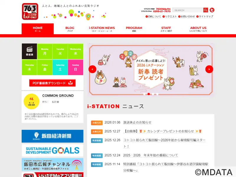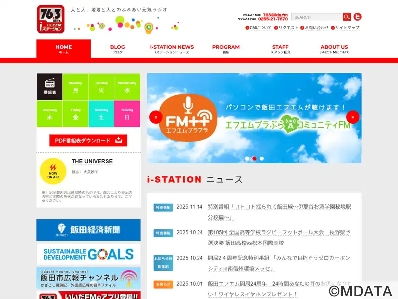 長野県飯田市を拠点とするコミュニティFM局。周波数76.3MHz、コールサインはJOZZ4AM-FMで、2001年に開局。「人と人、地域と人とのふれあい元気ラジオ」を掲げ、24時間放送を行っている。誰もが参加できる番組づくりが特徴。番組はパーソナリティのワンマンスタイルで運営され、飯田商工会館1階のスタジオやラジオ中継車による取材で、街の声を届け、現場からのきめ細かな情報を機動的に発信する。