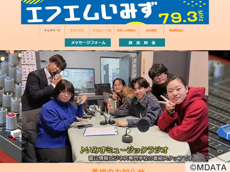 2007年4月に開局した射水市のコミュニティFM放送局「エフエムいみず」。周波数79.3MHzで24時間放送。富山県で5局目、北日本新聞系列の放送局で、太閤山ショッピングセンターパスコ2階にスタジオを設置。市民が参加して情報発信できる地域密着型のラジオ局。自社制作番組以外ではDIGITAL J-WAVEを再送信している。放送地域は射水市全域、富山市・高岡市の一部。JOZZ5AL-FM。