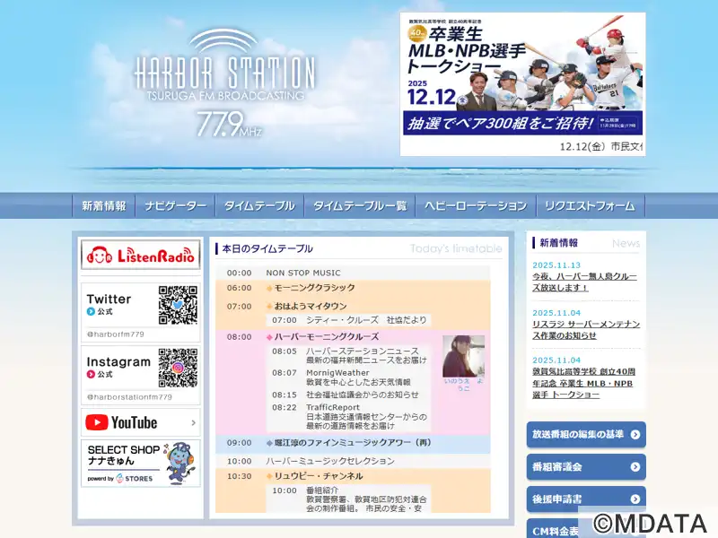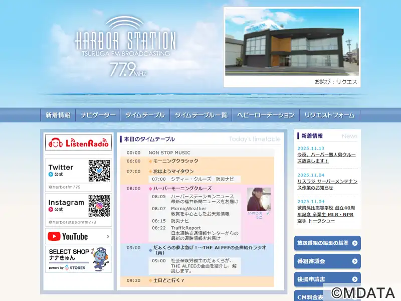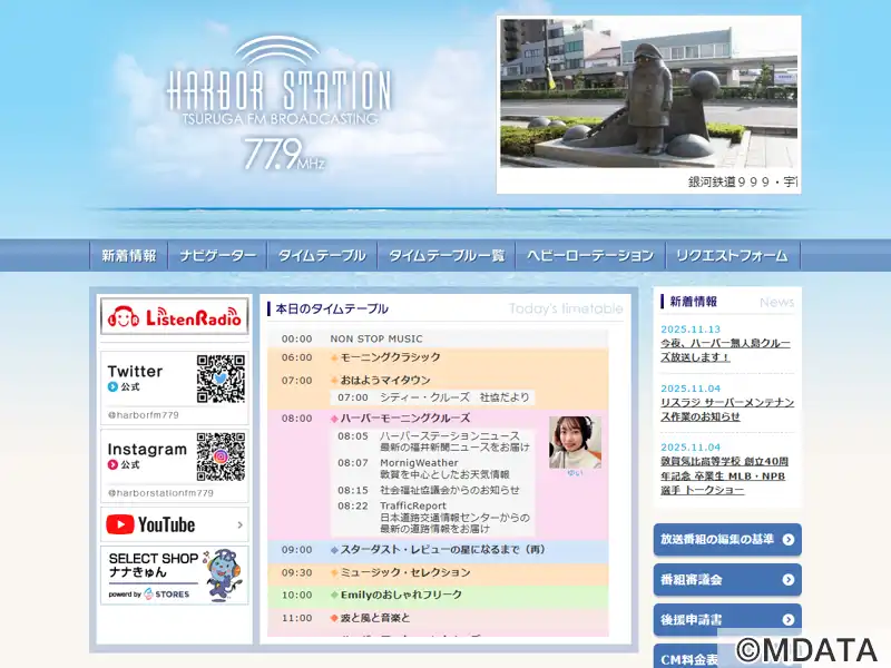 周波数77.9MHzで放送する敦賀市のコミュニティFM放送局。愛称ハーバーステーション。敦賀FM放送の運営により2007年4月3日、福井県内3局目、嶺南地方で初めてのコミュニティFMとして開局した。2021年10月には本町二丁目商店街から昭和町にスタジオを移転。市民生活に密着した情報を発信し、自主制作以外の時間はノンストップ音楽番組を放送。放送区域は敦賀市の一部。JOZZ5AK-FM。