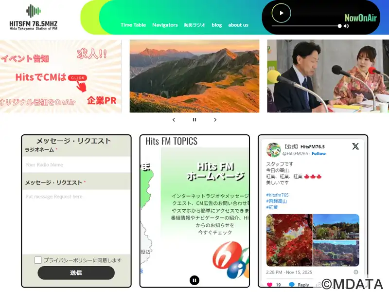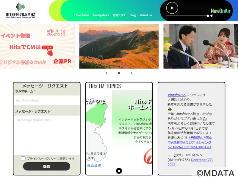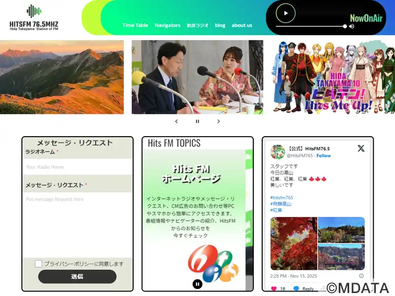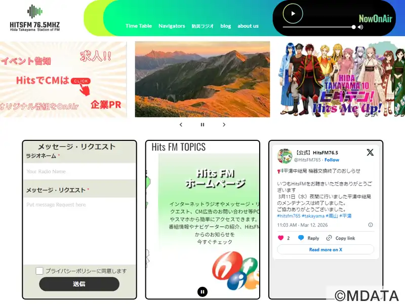 飛騨高山テレ・エフエムが運営する高山市のコミュニティFM放送局。愛称Hits FM(ヒッツエフエム)は、1997年7月19日に開局した岐阜県初のコミュニティ放送局。周波数は76.5MHz、スタジオはNHK高山放送会館2階に設置している。生活に密着した地域情報や観光情報などを発信し、高山防災ラジオとして緊急災害情報にも対応。6つの中継局をもち高山市と飛騨市の一部をカバー。JOZZ6AE-FM。