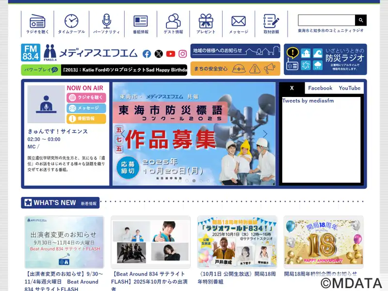 周波数83.4MHz、東海市にあるコミュニティFM放送局。ケーブルテレビ「知多メディアスネットワーク」運営で2007年10月1日開局。知多北部地域に密着した身近な情報、住民参加型の多彩な番組を発信。毎月東海市内で公開放送を実施。災害時は災害情報FM局として対応。放送区域:東海市および名古屋市南区・緑区・知多市・大府市・東浦町の各一部。JOZZ6AW-FM。