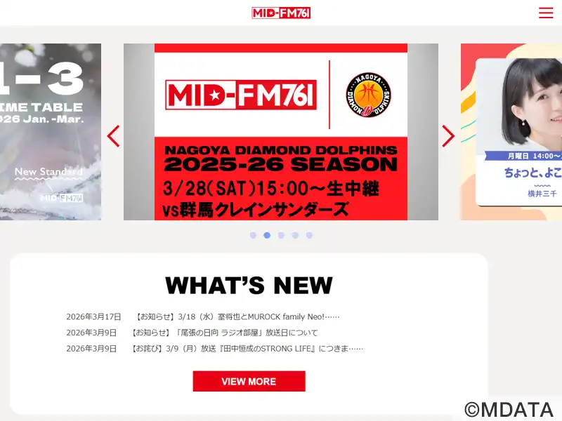 周波数76.1MHz、2008年8月20日に開局した名古屋のコミュニティFMラジオ「MID-FM761 (ミッドエフエムななろくいち)」。「楽しい・面白い・参加する」をテーマに大人のエンタテインメントラジオを創造。インディーズアーティスト中心の番組を配信。サイマルラジオ対応。放送区域:東区を中心とした名古屋市全域、近郊都市 (約300万人)。JOZZ6AX-FM。