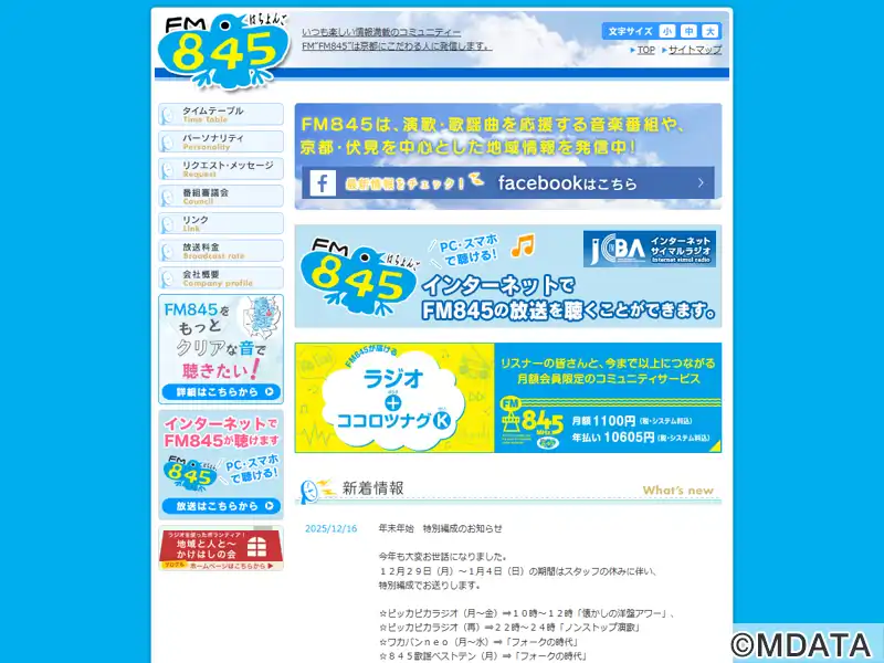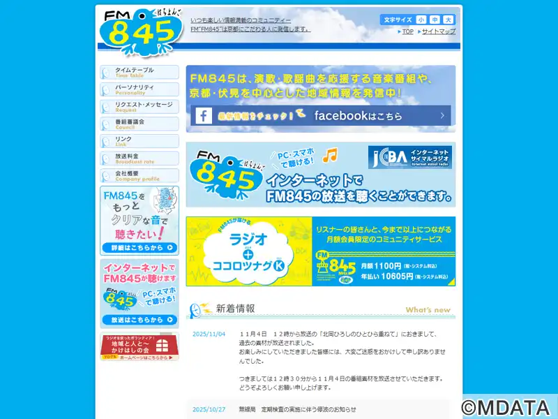 京都府京都市伏見区にあるコミュニティFM局。周波数84.5MHz、コールサインはJOZZ7AB-FMで、1995年に京都府初のコミュニティFM局として開局した。「京都にこだわる人に発信」をモットーに、地元の話題や生活情報、観光、健康、演歌・歌謡曲を応援する音楽番組など、幅広い内容を発信し、リスナー参加型のコミュニティサービスにも力を入れている。放送エリアは主に京都市伏見区・南区および八幡市の一部。