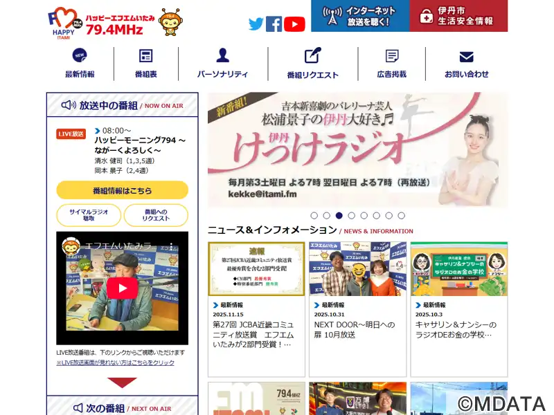 兵庫県伊丹市を中心とするコミュニティFM局。阪神・淡路大震災をきっかけに、災害情報の迅速かつ正確な伝達を目指して1996年に開局。周波数は79.4MHz、コールサインはJOZZ7AJ-FM。ほぼ全番組を自社制作で編成し、生放送番組を中心に、地域に根ざした生活情報、行政情報、イベント、スポーツ、音楽など多彩な内容で24時間放送。市民スタッフや地元高校生が企画・制作・出演する番組も展開している。