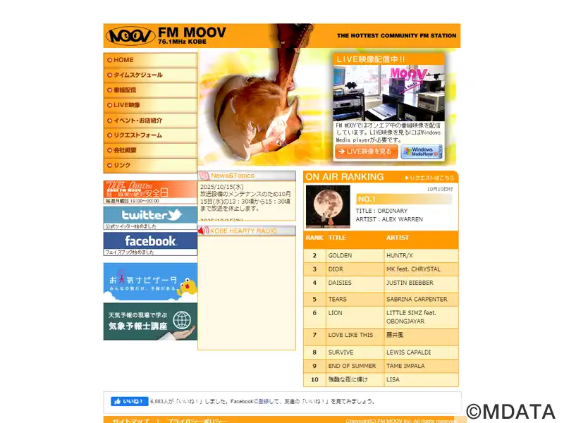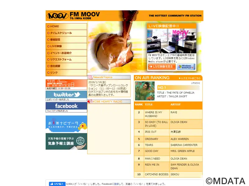 1997年6月に開局した神戸市中央区のコミュニティFM放送局。FM MOOV(エフエムムーヴ)は、自社制作の音楽番組を中心に周波数76.1MHz、出力10Wで24時間放送。神戸の老舗ライブハウス・チキンジョージ専務・児島勝が代表を務め、神戸らしさにこだわった先進的なサウンドを発信し、これまで多くの有名DJを輩出。放送エリアは神戸市須磨区、長田区、兵庫区、中央区、灘区、東灘区。JOZZ7AL-FM。