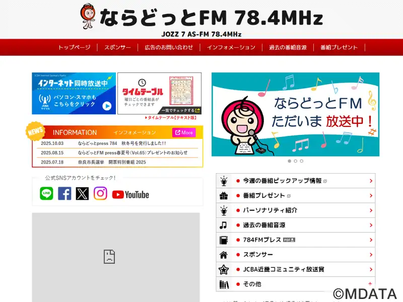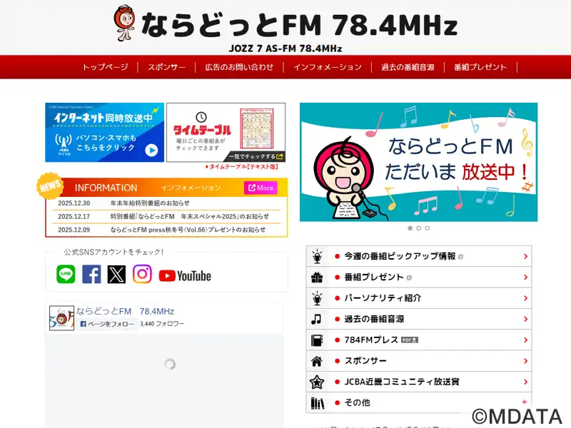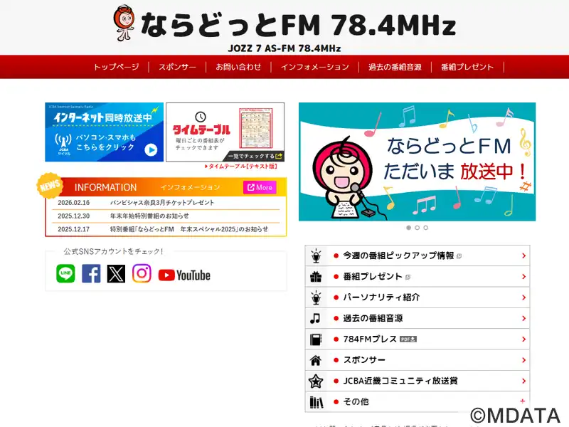 2000年6月に開局した奈良市のコミュニティFM局。周波数78.4MHz。県内2番目の開局で、奈良シティエフエムコミュニケーションズが運営している。当初は奈良オリエント館内にスタジオを設置していたが、15年4月から「もちいどのセンター街」に移転し、自社制作番組を中心に24時間放送。JCBAインターネットサイマルラジオでも配信。放送エリアは奈良市・生駒市・大和郡山市・天理市等。JOZZ7AS-FM。