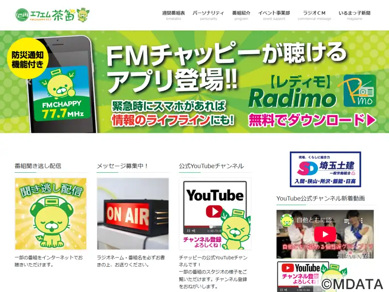 エフエム茶笛(エフエムチャッピー)は1997年2月に埼玉県で初めて開局したコミュニティFM局。周波数は77.7MHzで、埼玉県西部と東京都多摩西部地域(入間・所沢・狭山・飯能・日高・瑞穂町周辺)を放送エリアとする。本社スタジオは入間ケーブルテレビと同じ敷地内にあり、2012年よりイオンスタイル入間サテライトスタジオから公開生放送を開始し、インターネット配信も行なっている。JOZZ3AM-FM。