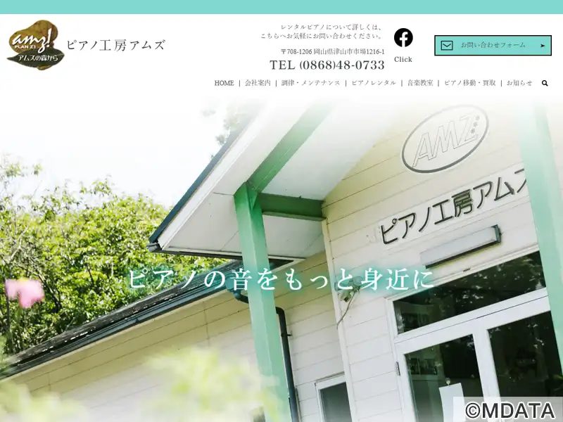 津山市のピアノ工房アムズが運営するスタジオです。レッスンや個人練習、リハーサルに幅広く利用できます。アムズの森サロンは音楽セミナーや発表会、ミニコンサート、アムズギャラリーとして作品の展覧会に適した小規模多目的ホール。ヤマハグランド完備。1時間2,000円。A.スタジオは5~6人程度のレッスン会場に最適。ヤマハグランド完備。1時間1,500円。バイオリン、ギター、管楽器の持ち込み可能。