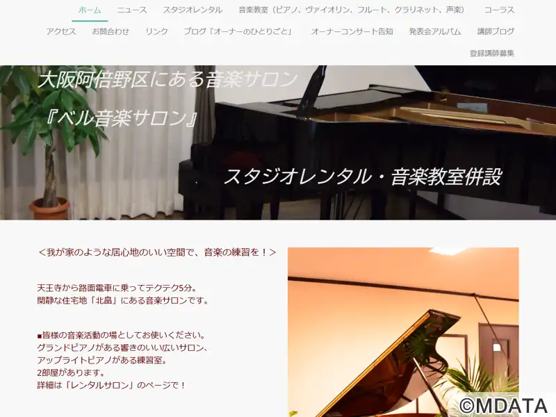 阿倍野区北畠に2013年10月オープンしたクラシカルな音楽サロン。サロンと練習室の2部屋を提供。グランドピアノ・ヤマハC3常設のサロンは、最大40人までのミニコンサート、室内楽アンサンブルやコーラス練習に最適。練習室ではアップライトピアノでの個人練習が可能。また、音楽教室ではピアノ、クラリネット、フルート、ヴァイオリン、声楽、コーラスのレッスンを開講しており、初心者から音大受験まで対応している。