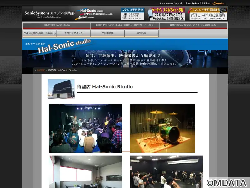 浜松市将監にある音楽スタジオで、バンド練習スタジオ3部屋と、40畳の多目的スタジオを提供。各部屋には対面ミラーが設置され、様々な音楽活動をサポート。多目的スタジオではLED照明・PAシステムによるスタジオライブ、吹奏楽、20人規模のコーラスや生楽器の録音にも対応。高天井空間はドラムやアコースティックギターの録音に適し、自然でオープンなアンビエント感を生み出し、自然な楽器の鳴りを収録することができる。