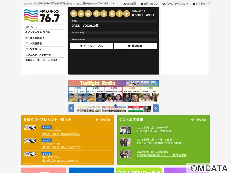宮崎県北、日向市・門川町のコミュニティFM局。周波数76.7MHz(元気にナローナ)。「まちを元気にするラジオ」をコンセプトに2013年12月1日に開局 (宮崎県5局目) 。(株)ケーブルメディアワイワイが運営。平日朝・夕方の情報番組を中心に地域情報や日替わりの地元エンタメ情報を発信。自社制作番組以外はミュージックバード再送信。日向市と門川町と災害協定を締結。JOZZ0CE-FM