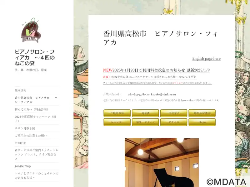 2005年4月に開館した高松市南部にあるクラシック音楽スタジオ。約24畳のサロンは、テラコッタ床や吹き抜け天井で、クラシック音楽に最適な響きを生み出す。ヤマハC3とボストン193の2台のグランドピアノ、ヤマハアビテックス音響技師による壁パネル、明るい庭園が見えるピクチャーズウィンドウなどの設備と環境が整っている。個人練習、レッスン、コンサートリハーサル、アンサンブルリハーサルなどの用途で利用できる。