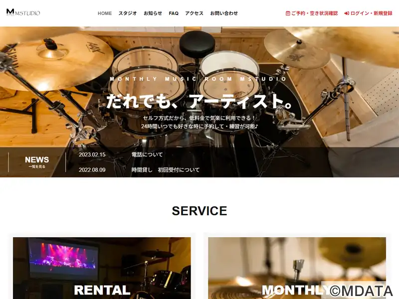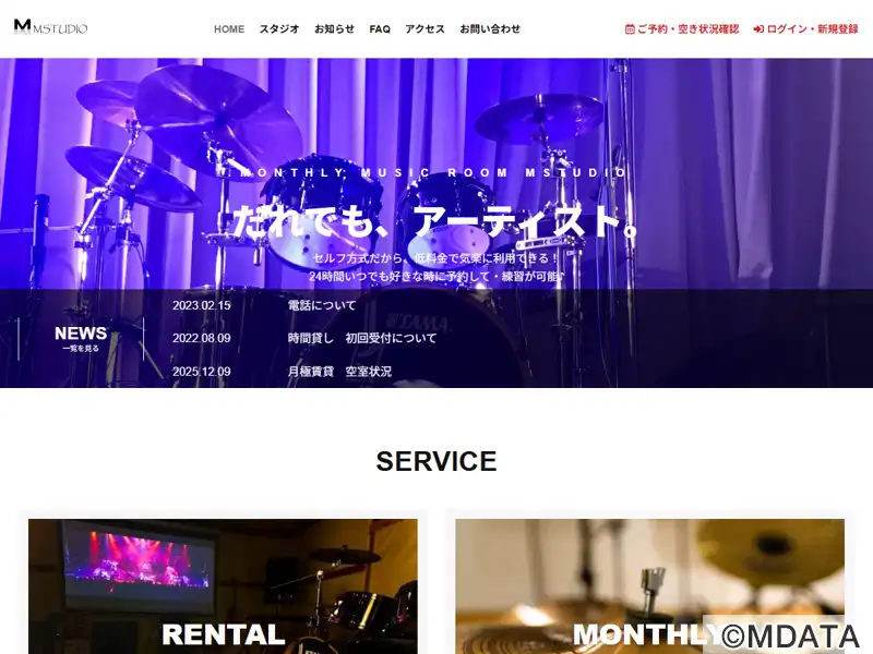 森と果樹園に囲まれた音楽練習スタジオ。月極賃貸スタジオと時間貸しスタジオルームがあり、スタッフ非常駐のセルフ方式。月極め賃貸ルームは通常のリハスタと異なり、電気代込みの月極定額制で24時間365日利用可能。機材は持ち込み設置のため練習ごとのセッティング時間が大幅短縮できます。機材付き時間貸しスタジオ(1部屋)はドラムセット・アンプ常設。1時間1,300円、学生練習1時間1,000円。