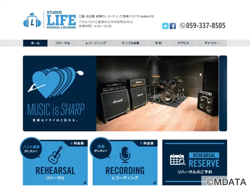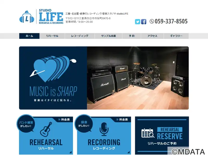 四日市市桜町にあるリハーサル&レコーディングスタジオ。広々としたスタジオスペースに、ハイスペックな機材を備え、確かな技術で高品質な録音が可能。プリプロからデモ制作、リリース用音源まで、様々な用途に対応する。定番機材を揃え、ProToolsによるデジタルレコーディングシステムを備えている。楽曲制作、編曲、ミックスダウン、マスタリングまで幅広く対応可能。各種イベントの高音質な出張レコーディングも行う。