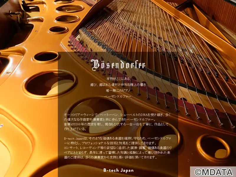 大阪市新御堂筋沿いにあるベーゼンドルファーピアノ専門店「B-tech Japan Osaka」ショールームに併設されたリハーサルスタジオ。天井高3.2m、イス20席のサロン風スタジオには、ベーゼンドルファー・グランドピアノ2台を常設しており、コンクール前の個人練習や2台ピアノや室内楽の練習に利用可能。国内外のアーティストによる公開レッスンや、有望な若い音楽家によるスタジオコンサートを開催している。