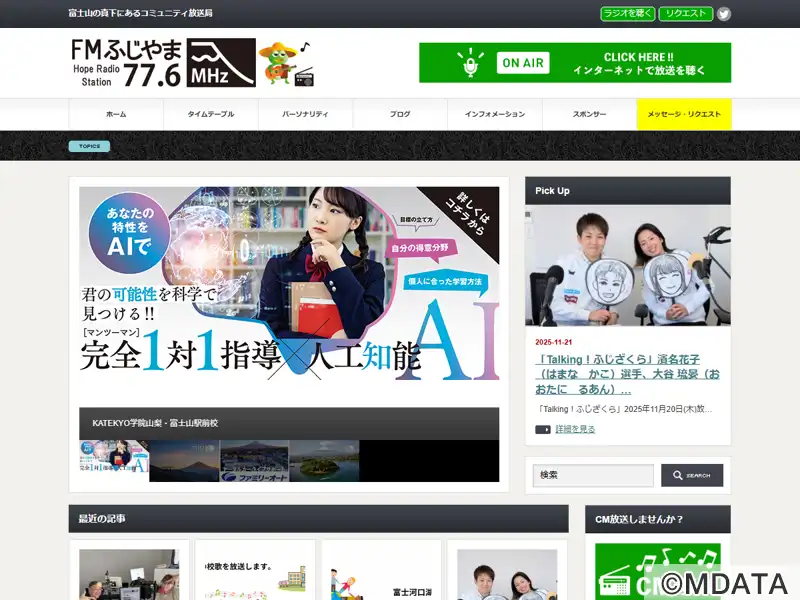 山梨県富士河口湖町にあるコミュニティFM局。2015年3月に開局。周波数は富士山の標高3776mにちなみ77.6MHz。コールサインはJOZZ3CA-FM。放送エリアは富士河口湖町、富士吉田市、鳴沢村のほぼ全域をカバー。暮らしに安心と彩りを添える放送を目指し、イベントや観光情報、行政・防災情報、登山シーズンには登山者向けの気象情報も提供する。JCBAインターネットサイマルラジオで全国配信も行う。