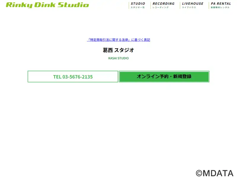 江戸川区葛西駅から徒歩1分の場所にあるリハーサルスタジオ。2013年8月にオープンした、首都圏を中心に音楽活動をトータルサポートする「Rinky Dink」の葛西店。Sst(8畳)、アコースティックピアノ常設のAst(13畳)、Bst(13畳)、Cst(13畳)の全4部屋を用意。定番機材のドラムやアンプなどを揃え、バンド・個人練習に快適に利用できる。長時間割引、無料機材庫など、様々なサービスを提供。