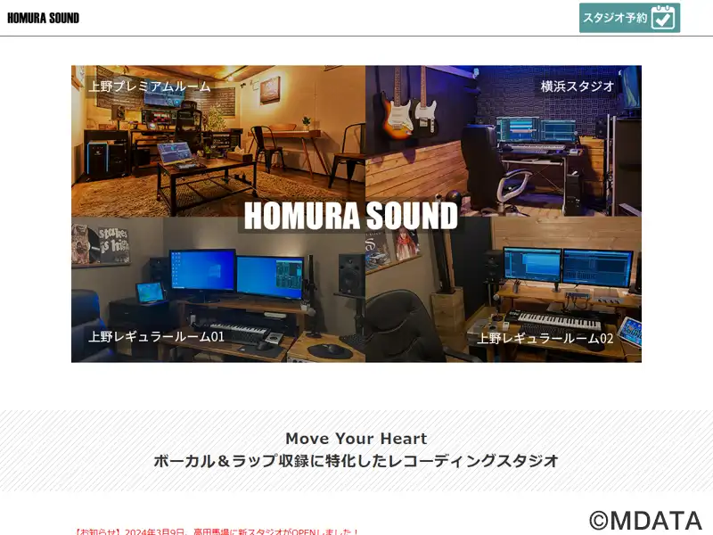 東京上野と横浜にあるボーカル・ナレーション専門レコーディングスタジオ。HOMURA SOUNDでは1時間から利用可能。MIX作業もその場で行え、J-POP、アイドル、HIPHOP、声優・アニソン、歌ってみた、オーディション用ボイス収録など様々な収録に利用できます。レコーディング初心者の方でもお気軽にお問い合わせください。2022年4月、上野Stに広さ20㎡のラグジュアリーなプレミアムルーム新設。