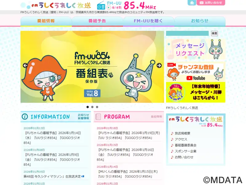 茨城県牛久市を中心に、地域密着の情報を発信するコミュニティFM局。周波数85.4MHz、コールサインはJOZZ3CC-FMで、愛称は「FM-UU」。2015年、NPO法人牛久コミュニティ放送により開局。牛久市保健センター2階に放送スタジオを設置し、地域のニュースや行政情報、防災情報、イベントや地元商店の紹介、音楽・トーク番組、健康番組など多彩な内容を提供。地域社会の絆を深める役割を果たしている。