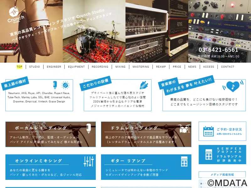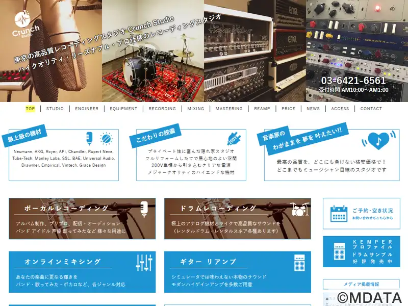 品川・戸越公園にあるレコーディングスタジオ。メタル系バンドの録音をはじめ、ボーカル、ドラム、ギター、アルバム制作等、多様なプロジェクトに対応。録音ブース、コントロールルーム、ディレクションスペースの3セクションで構成される。特に、ドラム録音に適した録音ブース、大型業務スタジオと同等のハイエンドなアウトボードやマイク、電源供給を可能にするアイソレーションダウントランスを導入し、優れた音質を実現する。